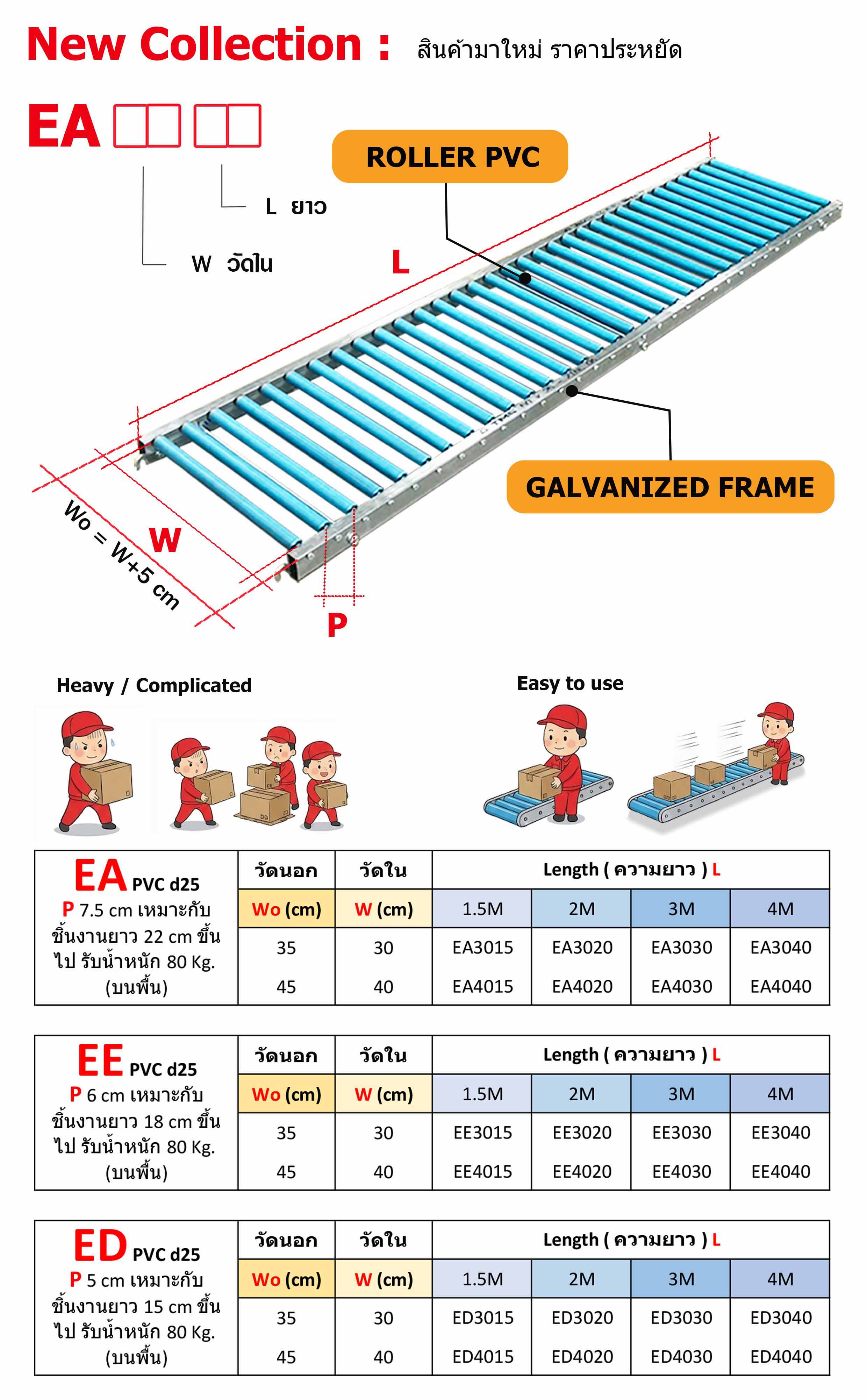 รางลูกกลิ้งสำเร็จรูป เป็นมาตรฐาน แตกต่างด้วยคุณภาพงานที่ดีกว่า ลูกกลิ้ง PVC และ โครงสร้างเหล็ก เคลือบสีฝุ่น สวยงาม ประณีต ทนทาน แข็งแรง ประหยัด ใช้งานง่าย ปรับเปลี่ยนการใช้งานได้ ต่อกันได้ ไม่ต้องใช้เครื่องมือ ใช้เวลาลำเลียงสินค้า ลดลง คุ้มค่า ลูกกลิ้งใหญ่กว่า ไหลลื่นกว่า ทุกชิ้นถอดเปลี่ยน D.I.Y. เองได้ ง่ายมากด้วยระบบ knockdown ทั้งหมด เรามีชิ้นส่วนอะไหล่พร้อมบริการทุกชิ้น รับประกันสินค้า 1 ปี *